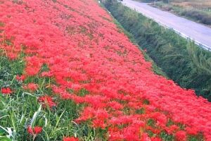 愛知県半田市の「矢勝川堤・新美南吉記念館周辺」は毎年9月中旬頃から300万本の彼岸花が咲き誇ります。
